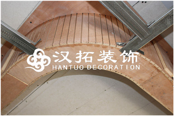 A、弧形或異形天花,用九厘板背面開鋸路襯底,面罩3厘板。目的:造型順暢。