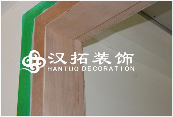 B、門套線底板用9厘板襯底,門套上方轉(zhuǎn)角開“7”形。目的:防止開裂。