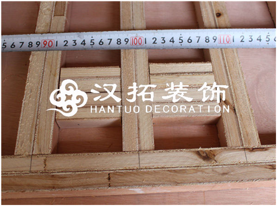 A、用15厘細(xì)木工板開條,將已裁好的飾面板背面朝上,將15厘板條涂好白乳膠粘貼在飾面板上形成框架,再在上面粘貼一層飾面板。