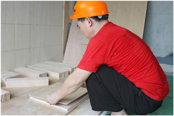 C、貼飾面板:在壓好成型的門扇模坯正反二面用白乳膠各粘貼一層3mm飾面板,再按照壓模坯的方法壓12天左右。
