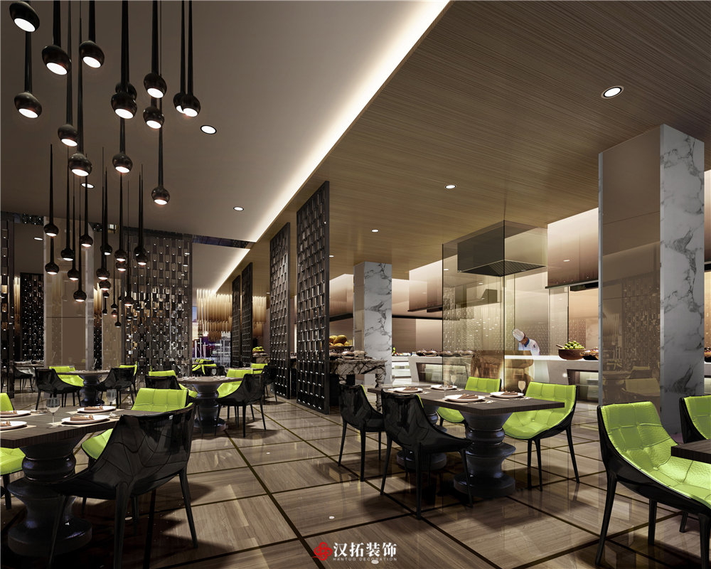 項(xiàng)目功能區(qū):大廳 服務(wù)臺(tái) 后廚 包間 辦公室 洗手間 餐廳 吧臺(tái) 休息區(qū)