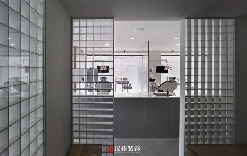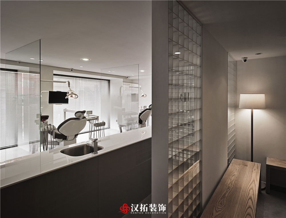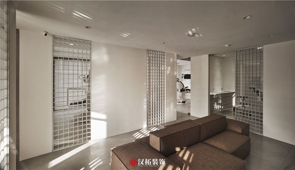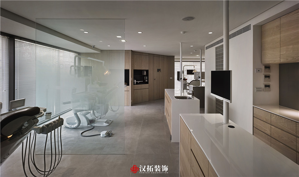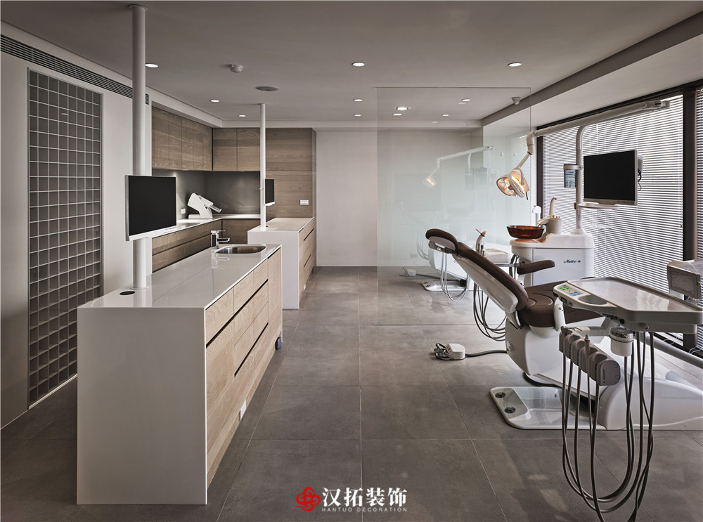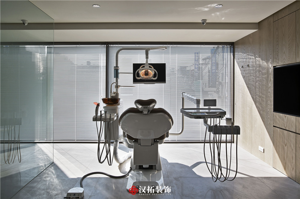 設(shè)計(jì)說明:此空間最大的特點(diǎn)是西曬,光線成為空間設(shè)計(jì)最重要的角色,搭配在動(dòng)線考量上,借由陽光的溫暖投射緩和患者治療的緊張情緒。診療區(qū)以玻璃作為隔屏,中間霧面至外圍逐漸清透的特性保護(hù)患者隱私