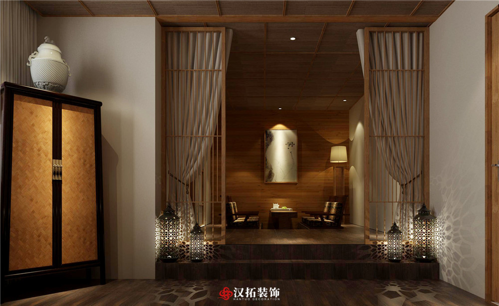 設(shè)計(jì)說(shuō)明:將古韻揉入每一寸設(shè)計(jì)中,貫穿于空間和置物的禪意,隨時(shí)給人一種優(yōu)雅和從容的感覺(jué),精致的藝術(shù)品擺設(shè)也給整個(gè)空間增添優(yōu)雅之感。