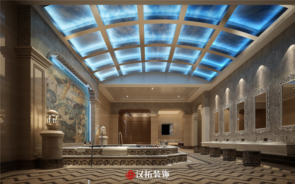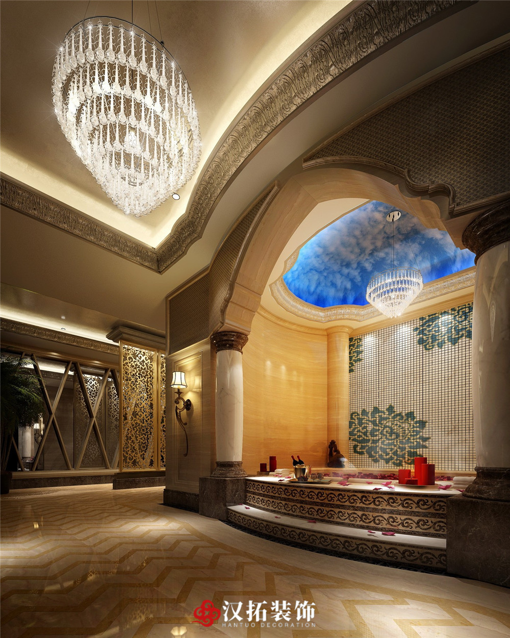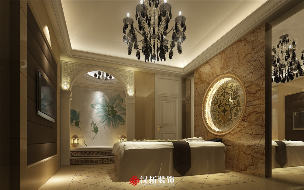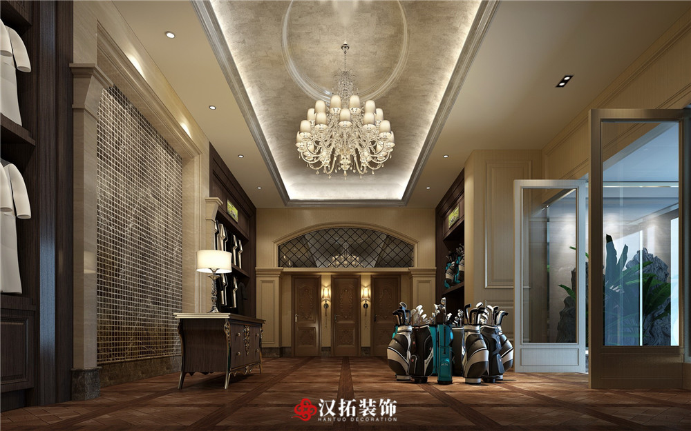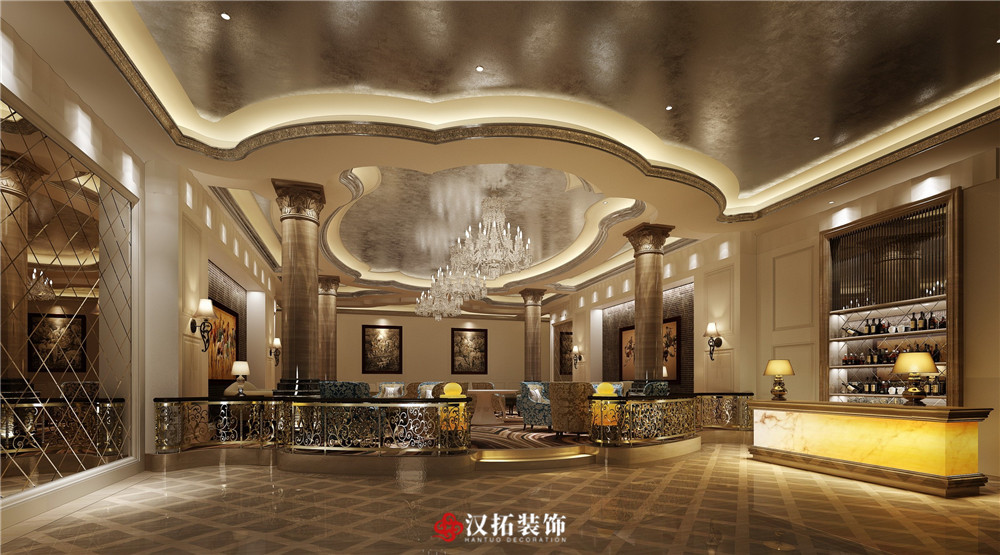 設(shè)計(jì)說明:將傳統(tǒng)元素與現(xiàn)代藝術(shù)表達(dá)完美統(tǒng)一,打造出舒適雅致的休閑場所。和諧的色彩搭配結(jié)合燈光設(shè)計(jì),金屬質(zhì)感的材質(zhì)和精致的紋路的演繹,在凸顯典雅氣質(zhì)的同時(shí),給人放松、自在的休閑空間,暢享人生之悅。