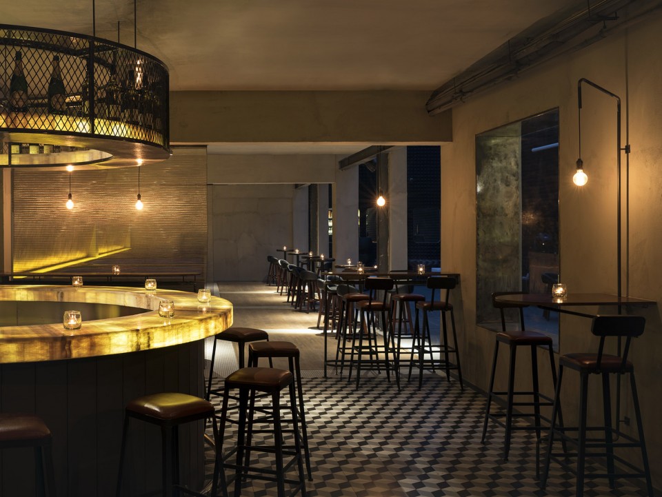設(shè)計(jì)說明:該酒吧由南京漢拓裝修裝修設(shè)計(jì)。漢拓設(shè)計(jì)師通過對酒吧空間原有的仔細(xì)的評估和測量,盡可能完整地保留了酒店原先建筑的尺度和架構(gòu)。設(shè)計(jì)師對于空間的打造使得酒店設(shè)計(jì)的風(fēng)格開放而富有節(jié)奏感。入口接待區(qū)酒品展示區(qū)的霓虹燈管為設(shè)計(jì)打下了感性的基調(diào)。