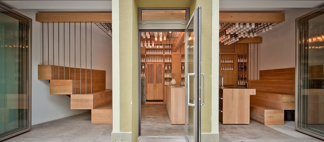 設(shè)計說明:兩側(cè)靠墻的部位是類似圓形劇場的長椅,這樣消除了一般酒吧內(nèi)調(diào)酒師和客人之間的界限。在這里,互動交流變得十分重要,座椅上的每個人都可以清晰地觀看中心兩個吧臺區(qū)混合、搖動和攪拌雞尾酒的過程。