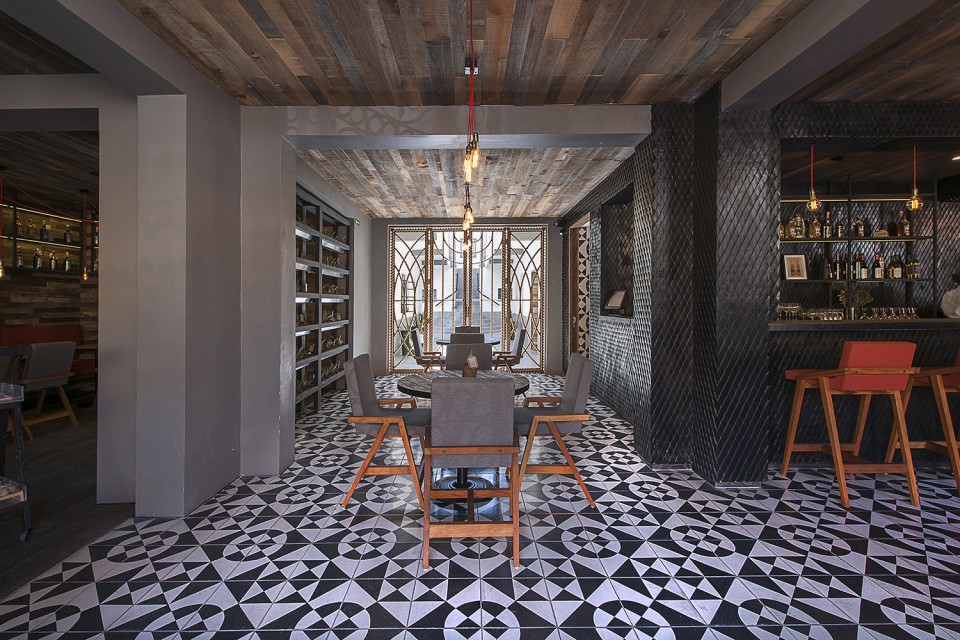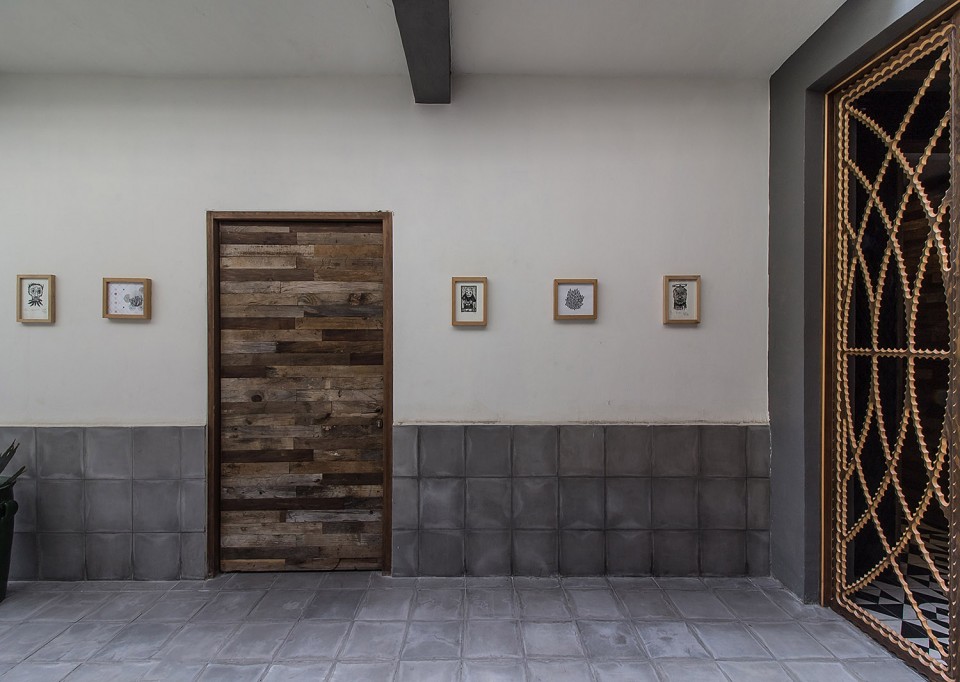 設(shè)計(jì)說明:室內(nèi)裝修材料選擇了經(jīng)濟(jì),可持續(xù)發(fā)展的本地材料:回收梅斯卡爾酒桶,傳統(tǒng)黑色粘土瓦,以及當(dāng)?shù)刂剖止に嗟卮u。