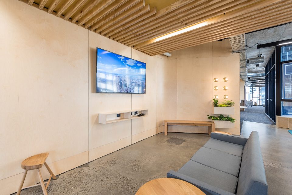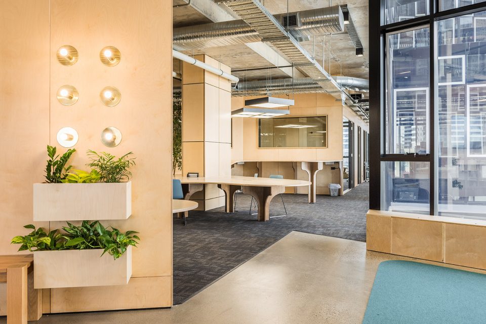設(shè)計(jì)說明:設(shè)計(jì)師特別善于對(duì)于辦公空間的利用,在2017的這個(gè)新案例中,辦公室裝修設(shè)計(jì)被融入了很多的藝術(shù)元素,設(shè)計(jì)師對(duì)天花板的設(shè)計(jì)運(yùn)用了原木元素并與辦公室內(nèi)的其他軟裝做了很好的結(jié)合。在窗戶的墻邊,直接用原木板材打造出了一圈的辦公桌,保證了辦公開放式,員工之間溝通無(wú)障礙,辦公的扁平化管理,使得員工之間的交流無(wú)障礙,即時(shí)高效。非正式會(huì)議室采用了大面積的落地窗,使得光線能夠直接投射進(jìn)房間,保障了辦公室內(nèi)有充足的光線。后面是會(huì)議室、員工區(qū)和老板辦公室。造型上采用了經(jīng)典、現(xiàn)代的工業(yè)黑框,顯得十分正式,符合辦公室裝修設(shè)計(jì)的風(fēng)格。