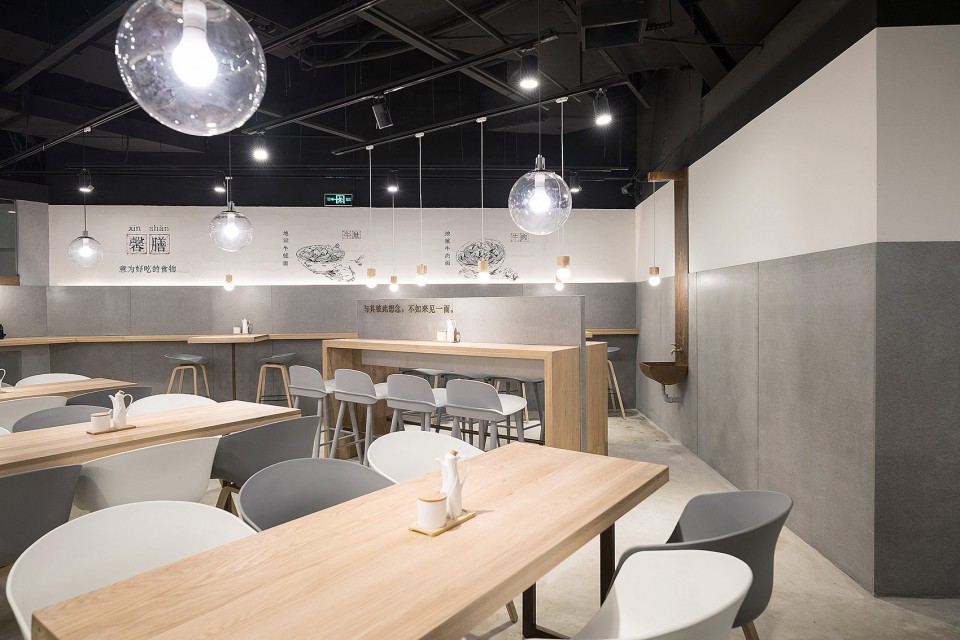 裝修理念:該面館是由南京漢拓裝飾工程有限公司裝修的。原木色的自然風,成為了面館內(nèi)的藝術(shù)裝置,設(shè)計師團隊盡量理解并順應了餐飲行業(yè)尤其是快餐行業(yè)的特殊性,將室內(nèi)空間進行了相應的改造,對格局進行了精致的切割,讓一切看上去都是那么協(xié)調(diào)。