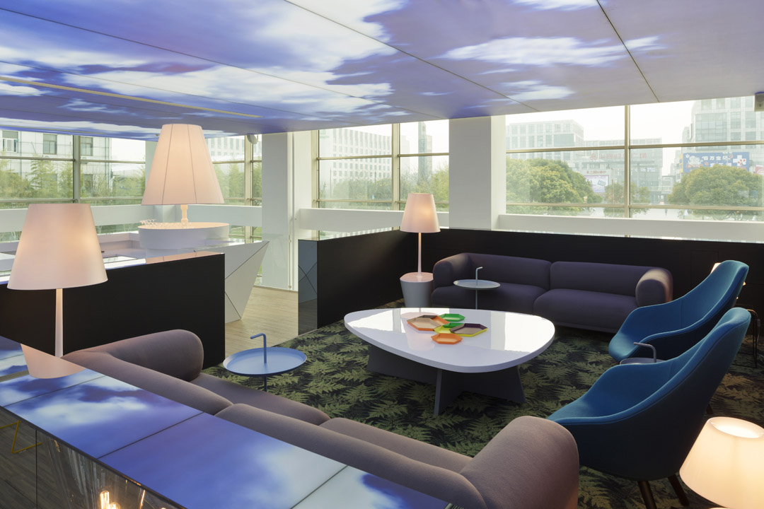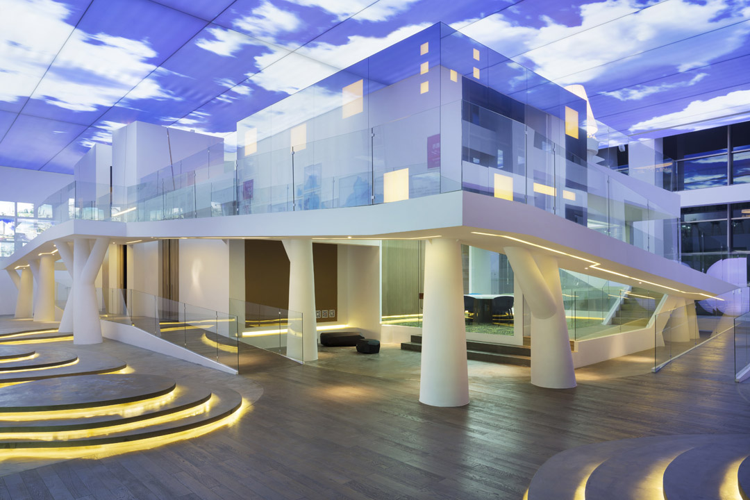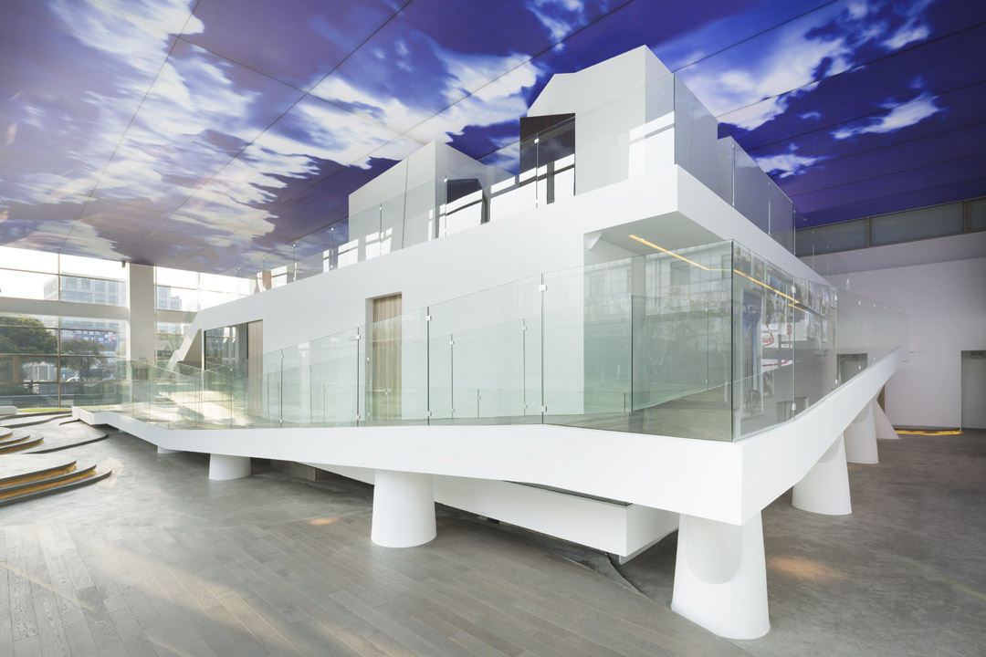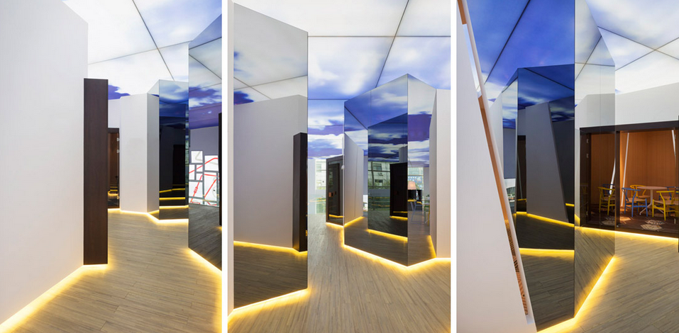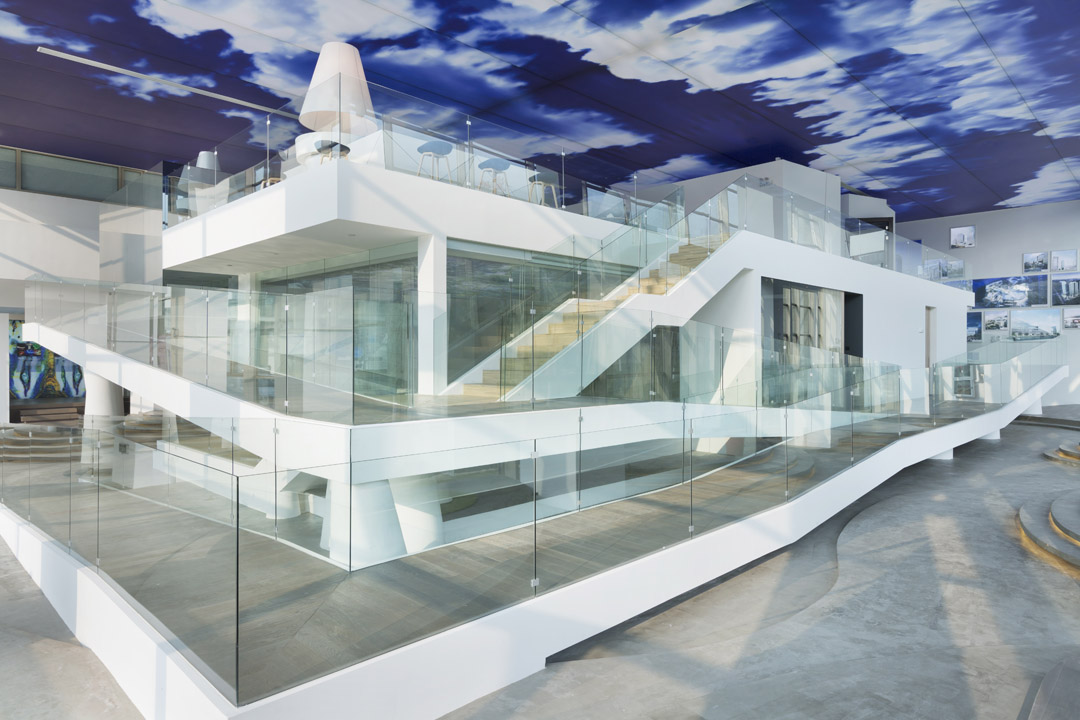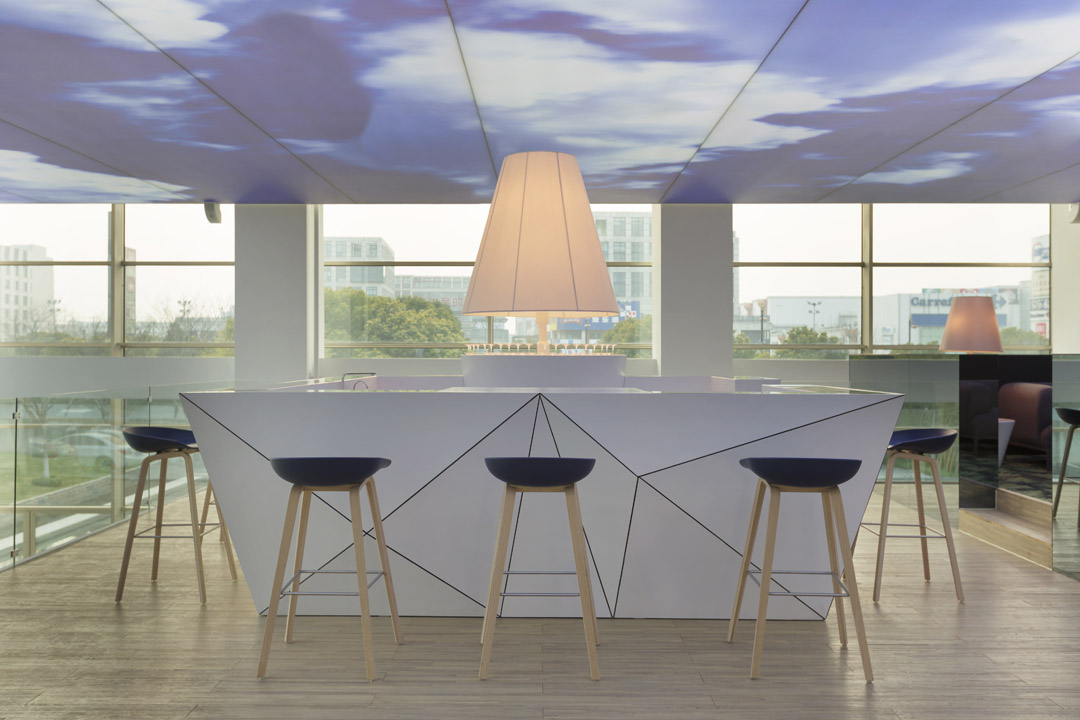 設計說明:該展廳是由南京漢拓裝飾工程有限公司裝修的。該項目為南京售樓處的一個展廳兼線下體驗中心,設計師理解了場景營銷對于業(yè)主的重要性,用設計的語言對展廳進行了塑造和解讀,天花做了藍天白云的裝飾,讓展廳的展示效果更加直觀;整個展廳室內用大面積大量的玻璃材質進行裝配,一個是顯得通透、明亮,另一個就是表達產品的直觀性;對于小體驗中心進行了造型設計,立柱的支撐既有裝飾作用,又使得樓房高層的體驗感更真實。