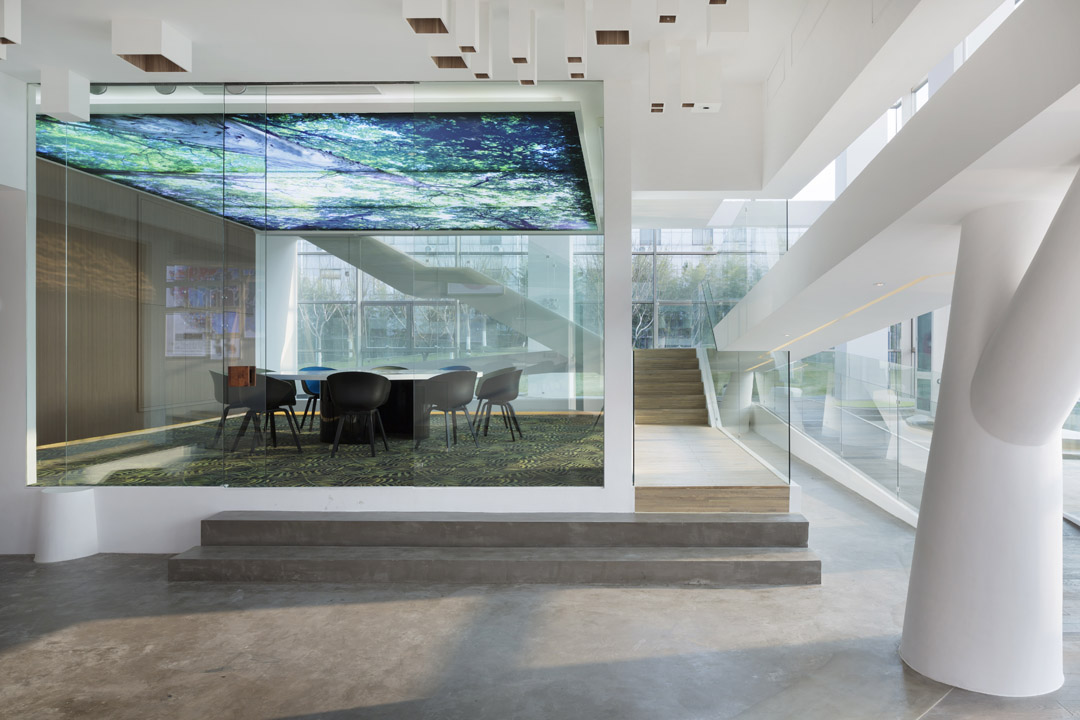 裝修理念:該展廳是由南京漢拓裝飾工程有限公司裝修的。該項目為南京售樓處的一個展廳兼線下體驗中心,設計師理解了場景營銷對于業(yè)主的重要性,用設計的語言對展廳進行了塑造和解讀,天花做了藍天白云的裝飾,讓展廳的展示效果更加直觀;整個展廳室內用大面積大量的玻璃材質進行裝配,一個是顯得通透、明亮,另一個就是表達產品的直觀性;對于小體驗中心進行了造型設計,立柱的支撐既有裝飾作用,又使得樓房高層的體驗感更真實。