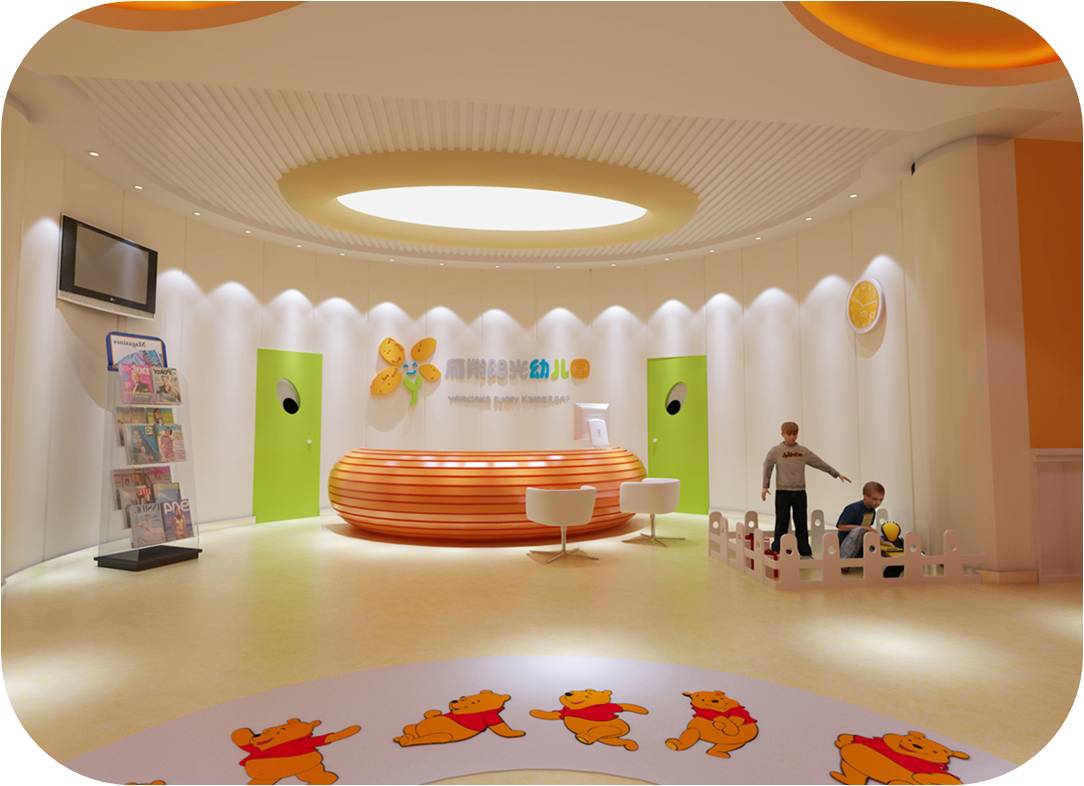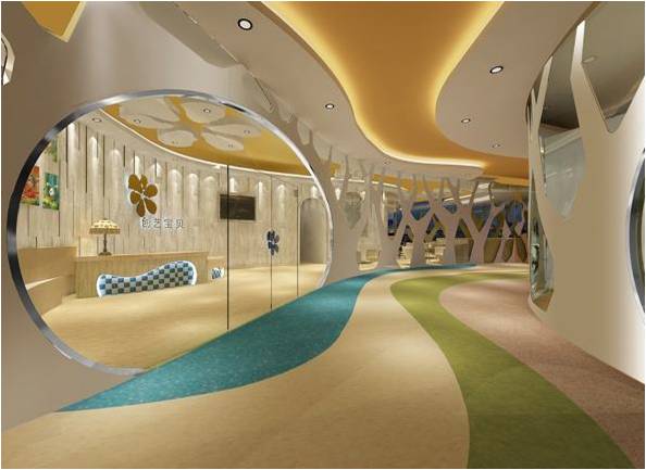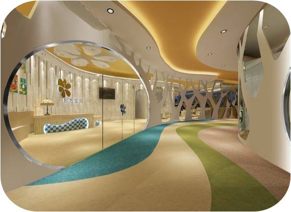 本項目的設(shè)計為多元化的,應(yīng)該充分去理解孩子的內(nèi)心世界而進(jìn)行設(shè)計。首先,早教中心的設(shè)計要點:安全、環(huán)保、趣味、色彩。表現(xiàn)要點:自然、卡通、陽光、活躍。設(shè)計要點,安全肯定是放在首位,任何細(xì)節(jié)的處理都需要把不安全系數(shù)降到最低,比如多用弧面物品,在孩子空間不要出現(xiàn)玻璃等危險品。環(huán)保材料是必須保證的,關(guān)系到孩子的身體健康。趣味以孩子先天的好奇心來為各個空間做不同的異形設(shè)計,給孩子思考及了解外界新事物的空間。色彩類似logo一樣運用一些顏色,讓整體環(huán)境豐富多彩,給孩子帶來感知力。