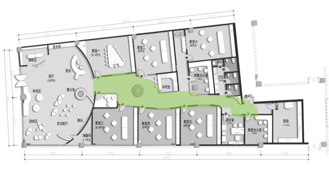 動線是輔助平面給大家看的人流走向圖,這是學(xué)生動線,清晰明了。