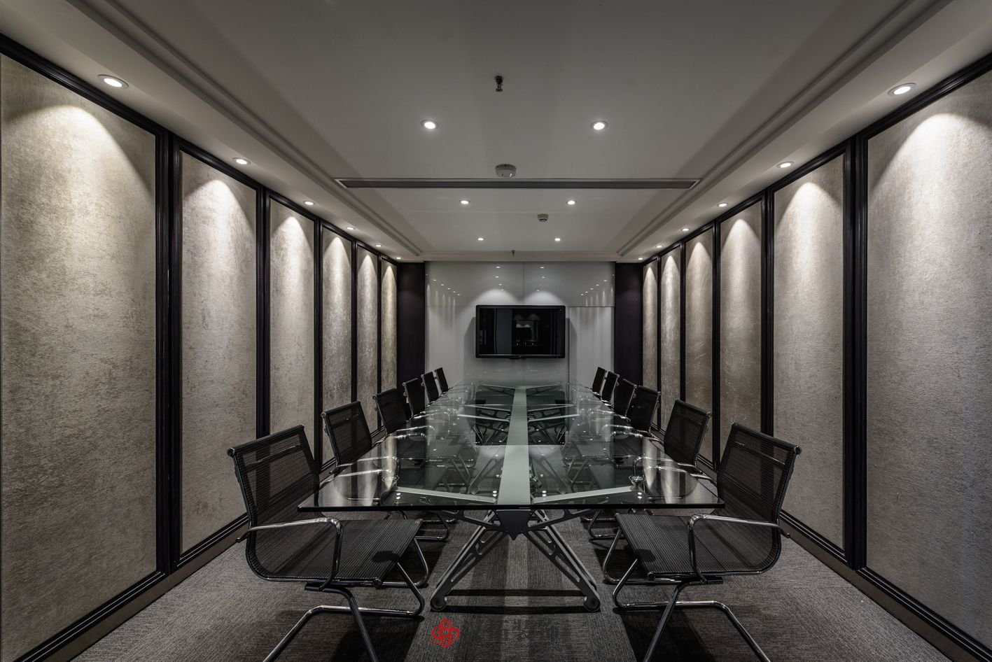 設計說明:本設計整體色調(diào)采用藍灰調(diào),使員工辦公的心情能夠沉靜下來,提高工作效率。