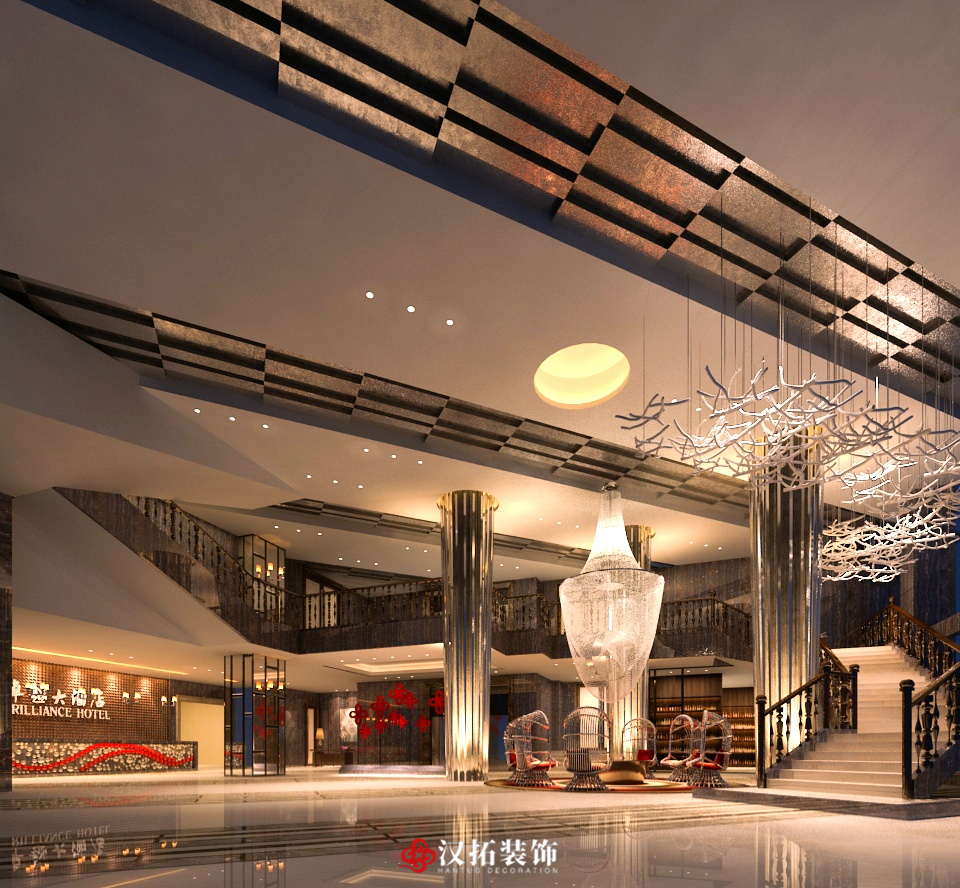 設(shè)計說明:項目預(yù)算:5700萬 以古典的氣息烘托出酒店的奢華氛圍,材質(zhì)多使用銀白龍,灰茶鏡,直紋墻紙,來打造功能全面的用餐空間