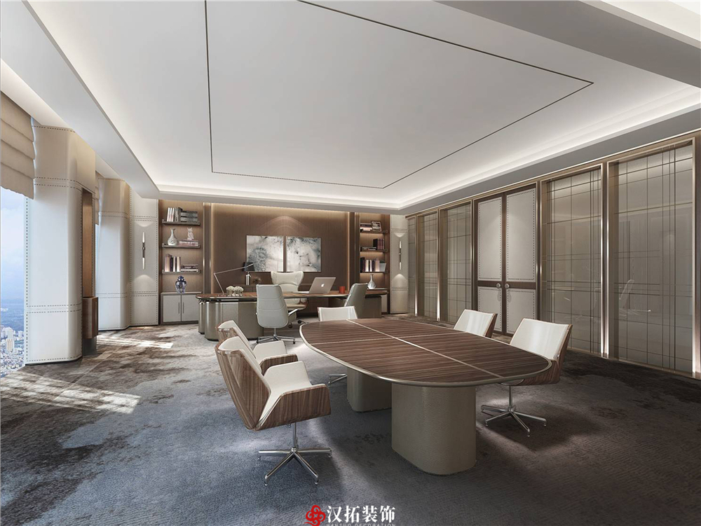 設(shè)計說明:預(yù)算:105萬 色彩搭配除了清透、雅致、穩(wěn)重、大氣之外,亦表現(xiàn)出一種力度感和效率感。滲透入貴機械制造企業(yè)之“清透感”,亦反襯企業(yè)之“柔美感”